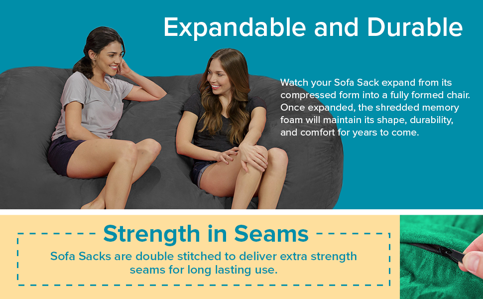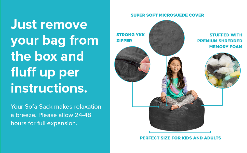 ONE SOFA, MANY USES: Portable and versatile, these foam bags are a great alternative to blow-up beds, sleeping bags, or day beds for slumber parties and overnight guests. Furnish game rooms, dorm rooms, or play rooms with them for movie night, game night, play dates, reading, or just cuddle time.