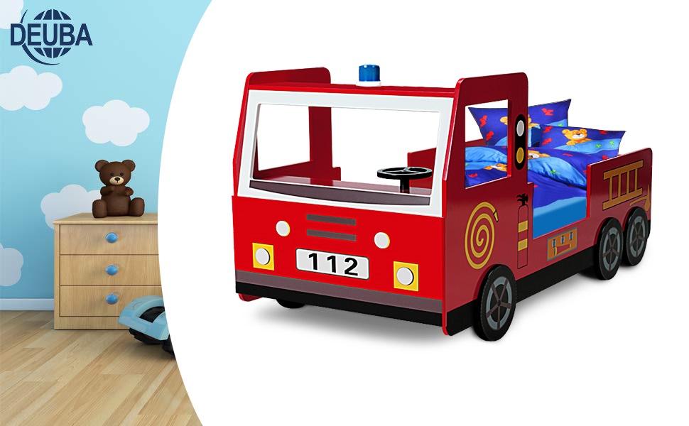 - SLEEP SAFELY: A child-friendly, large bed with a fire brigade theme that children will love to sleep in. Clever elevations on the sides protect against falling out, and rounded edges also make the bed safe for playing.