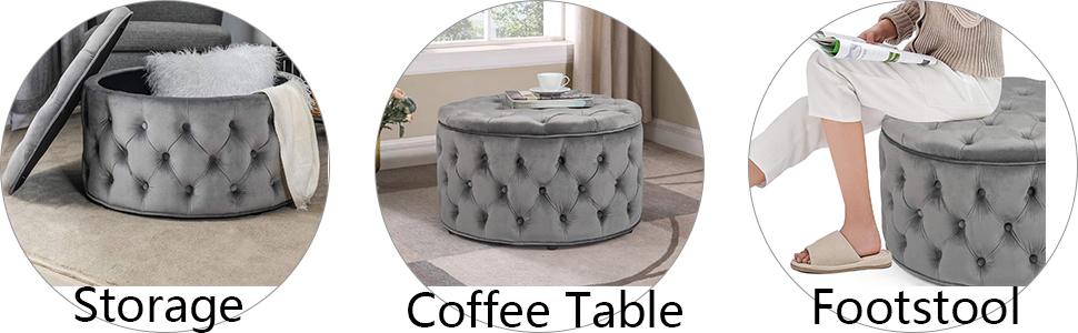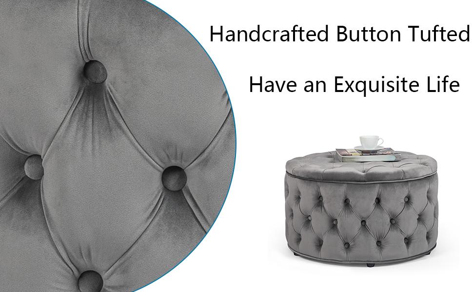 • 【Furniture】Homebeez Round Velvet Storage Ottoman, Button Tufted Footrest Stool Coffee Table