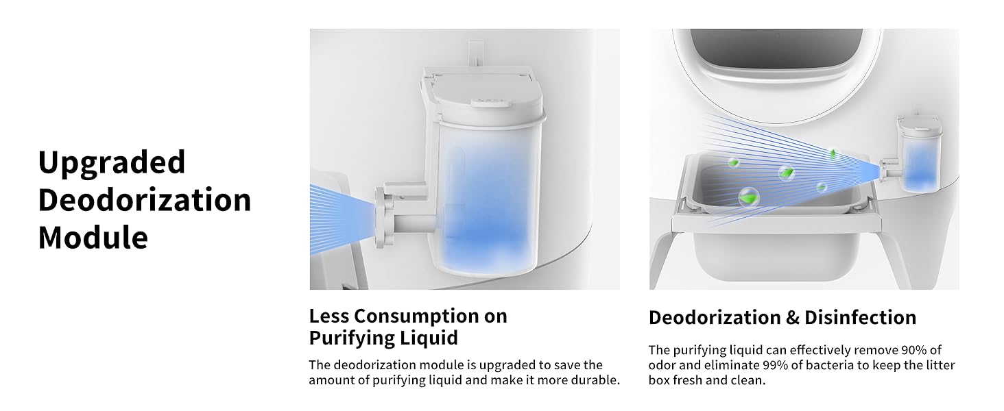 - 【AUTO-CLEANING & SMART ODOUR ELIMINATOR】Unlike traditional cat litter tray, PETKIT PURA X automatic litter tray can clean and deodorize itself Automatically, Scheduled, Manually. The independently researched and developed purifying system eliminates smells in the enclosed litter pan efficiently. It also has Auto Cleaning and Scheduled Cleaning mode. No more scoop and odor free in the room