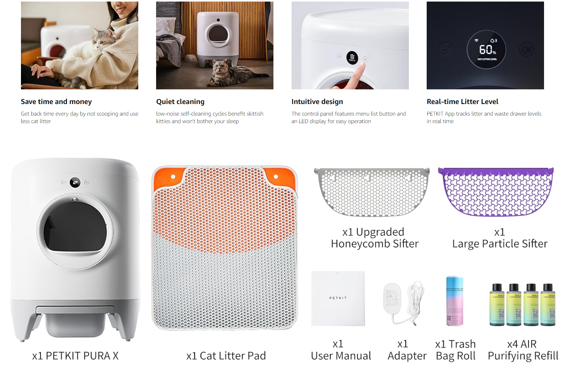 PETKIT Self Cleaning Cat Litter Tray, PURA X Automatic Cat Litter Tray with 60L Large Capacity, Odor Control Smell Free, xSecure, APP Control Smart Robot Litter Box for Multiple Cats with Mat & Liners