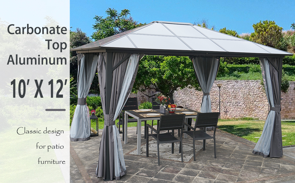 • Kozyard 10' x 12' Hard Top Gazebo, Permanent Outdoor Aluminum Patio Gazebo with Aluminum Composite Polycarbonate Canopy for Yard Lawn and Garden, Includes Curtain and Netting (Edward 10' x 12')